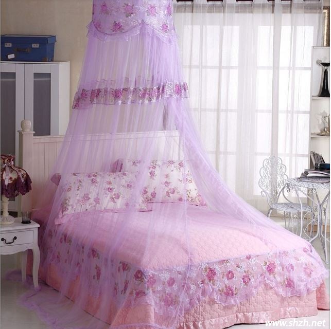 紫色是一個神秘而性感的色彩,它代表著永恒。例如紫水晶,代表了永恒與純潔的愛;而像薰衣草這樣的淺紫色又是樂趣的象征,讓人們在不經(jīng)意的某個瞬間回憶起了春天的美好還有年輕時浪漫的往事。用紫色做成的床幔爛漫溫馨,這種垂簾式的床幔是最適合大圓床的了,讓滿眼的爛漫充實視野,躺在其中享受屬于你們的小小薰衣草海洋。