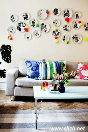貼出個(gè)性:你的家里多多少少會(huì)有一些少有破損的盤盤碟碟,對(duì)于這些有缺口的盤子要是繼續(xù)使用的話,會(huì)非常的不安全,但是扔了話又覺得太浪費(fèi)了,所以日積月累,你家總避免不了存了很多這樣有缺角的碟子,那么現(xiàn)在你就把他們?nèi)磕贸鰜頀煸趬ι习桑匦聡娚掀恋纳?,隨意的掛在墻上就是極具個(gè)性的沙發(fā)背景墻了。