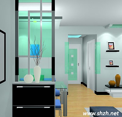 這款玄關(guān),簡(jiǎn)潔卻很有通透的感覺(jué),整個(gè)客廳很有層次感,而且淡綠色的裝飾,也顯得特別清爽干凈??臻g協(xié)調(diào)性非常好。