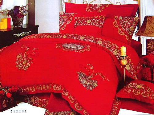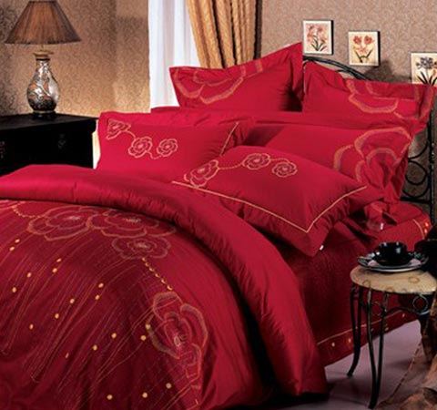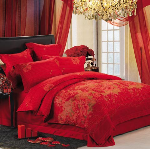 概要: 一般來(lái)說(shuō),中國(guó)人結(jié)婚一般都偏愛(ài)紅色,床上用品自然也不例外,選用紅色就是想圖個(gè)吉利熱鬧、讓大喜的日子能更添幾分喜慶?! ≡诨鸺t的玫瑰園中,幸福的新人在舉行盛大的婚禮,此時(shí),比愛(ài)情還要珍貴的就是幸福的時(shí)光。給人感覺(jué)就是一床幸福的顏色,所帶來(lái)的,也是那幸福的時(shí)光。