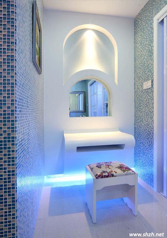 簡單的浴缸,整個白色的單一色彩加上燈光設計,映照出朦朧的藍色較為昏暗,略有一絲涼意滲透。地中海風情的衛(wèi)浴空間設計不僅需要給生活帶來方便,同時也希望能更好的幫人舒緩沉重的心理。浴室的光線主要還是取決于自然的好,但因為某些建筑的原因,也可以通過燈光加強效果,地中海風格較多的是采用拱形門窗形式增加光線,作為衛(wèi)生間的絲潤更易達到通風效果,同時也更接近大自然。整體造型一方面看上去整潔大方,同時與各種配飾也很容易搭配使用。現(xiàn)在地中海風格大多主要是以小清新為主,深受廣大年輕人喜愛,要是把這些小清新也裝進浴室,一定會給你的沐浴帶來一個浪漫優(yōu)雅的享受過程。同時,地中海風格的家居還要注意綠化,爬藤類植物是家居中常見的植物,小巧可愛的綠色盆栽也很常見,而且擺設起來會比較放便