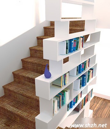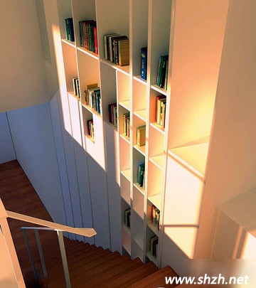 千萬別覺得樓梯旁邊的墻體除了掛照片、畫裝飾畫等裝飾用途外已無他用,既能儲物,又能收納你的書籍,那才是一舉兩得的好想法。不過,我們并不建議你將樓梯旁邊的墻體大面積掏空,因為墻體要承受整個樓梯的大部分壓力,所以,小面積的利用是更為恰當?shù)姆绞?。如果想要大面積改造,需要事先對墻體進行鋼結(jié)構(gòu)加固處理,另外,還需要注意墻體的原有功能設(shè)置是否會與改造發(fā)生沖突。