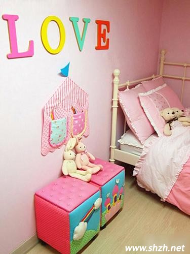游戲凳子都是柔軟的皮藝,可以保證孩子玩耍時(shí)碰到也不會(huì)受傷,床品采用了溫馨舒適的粉色,兩個(gè)小茶幾凳拼湊在一起,正好是一副可愛(ài)的童話世界,分開(kāi)來(lái)看也可愛(ài)無(wú)比,令整個(gè)空間看起來(lái)更顯甜美。