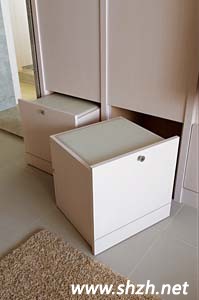 電視墻下的收納設(shè)計充滿機能實用性,拉開內(nèi)側(cè)為收納物,上面還可當(dāng)作小坐凳,請來訪朋友上坐,同享歡樂時光。