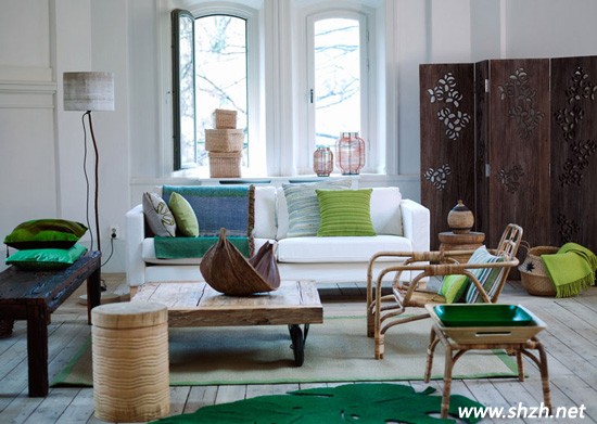 這款客廳設(shè)計(jì),首先映入眼簾的其實(shí)是軟裝的色彩搭配上,非常清新自然,仿佛被大自然包圍的感覺(jué)一樣。不過(guò),要重點(diǎn)說(shuō)的是傾斜吊頂?shù)脑O(shè)計(jì)上,狹長(zhǎng)空間采用傾斜的吊頂,從而使得空間更具立體感,在配上家居色彩,則緩和這壓迫的感覺(jué)。