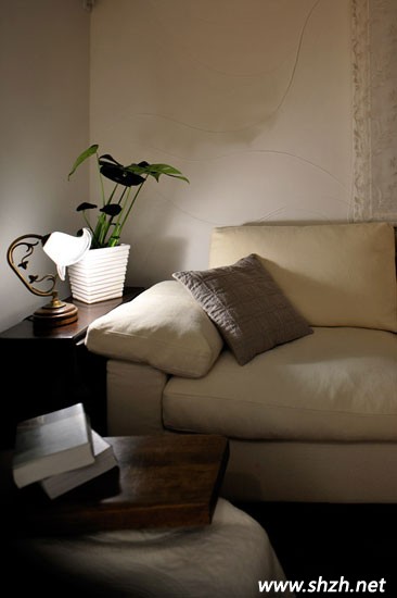小小角落,也擁有自然浪漫的氣息。麻色的布藝沙發(fā),感覺溫暖而舒適,給小角落的裝飾更具生活的恬淡韻味。沙發(fā)邊上的小桌子,深木色打造,有種復古的氣息。桌上形狀獨特的小臺燈,潔白如玉,而旁邊的綠植,則更是讓這樣小小的空間充滿無限的自然色彩。