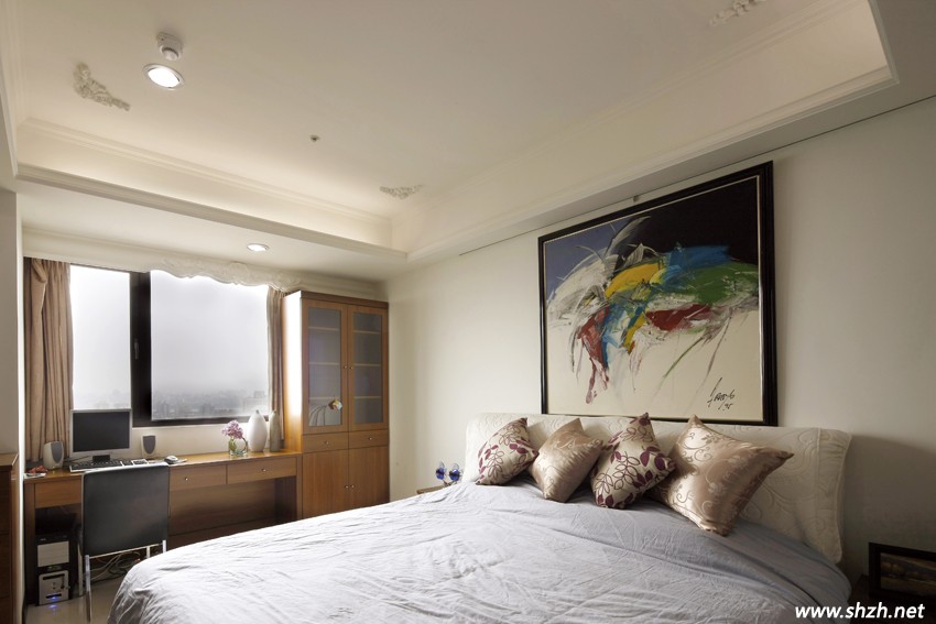 家中的收納是整體規(guī)劃不可或缺的重要項目,全案裝修過程也因為櫥柜家具化的做法省下不少時間與金錢,基于事前精準(zhǔn)的丈量,讓這些在工廠制作的系統(tǒng)櫥柜,可以在完成之后再運至現(xiàn)場搭配精致木作收邊來組裝,同時也因?qū)I(yè)工廠無塵的要求更高而倍增質(zhì)感,更重要的是大大降低施作現(xiàn)場的污染,可說是一舉數(shù)得,特別像是主臥室床側(cè)雅致的大型白色高柜,以及床頭后方附設(shè)更衣間內(nèi)并列的兩側(cè)衣柜和梳妝臺,都是優(yōu)質(zhì)系統(tǒng)櫥柜搭配部份木作的精彩示范。床頭格外精致的立面勾縫造型,經(jīng)由溫暖潤澤的實木紋理,烘托線條等比分割的簡潔造型,清新淡雅的色彩布局,大大提升私密空間的舒適度。