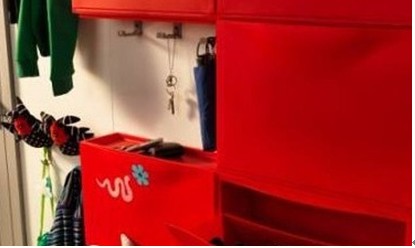 對于三口之家來說,家里多了個寶貝,相對于以前來說,現(xiàn)在又增添了不少物品。小孩玩物雜物非常多,因此需要劃分開各自的領(lǐng)域,以孩子的升高為基準(zhǔn),將儲物柜釘在他夠得著的地方,存放鞋子和玩具。