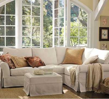 白色的布藝轉(zhuǎn)角沙發(fā),舒適又具有親和力,很受年輕時尚一族的青睞。