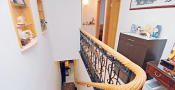 寶晶苑大宅外觀保養(yǎng)不俗。梯間布置亦甚講究,墻身的掛架內(nèi)就放有不少特色擺設(shè)。
