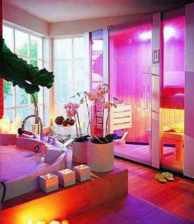 富有靈性的紫色是女人們最鐘愛的色彩,若隱若現(xiàn)的紗簾隱約而不可捉摸,兩者結(jié)合構(gòu)成了家中最迷離的一道風(fēng)景。夏天試著在浴室干濕過渡區(qū)域配上輕盈淡紫色紗幔,既分割區(qū)域又讓浴室的空氣通透舒適。