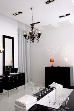 這一系列采用白、黑、紅色塊的大面積應(yīng)用,造型復(fù)古又時(shí)尚,烤漆玻璃與高光漆面技術(shù)的結(jié)合正是今年米蘭展的主流風(fēng)尚。