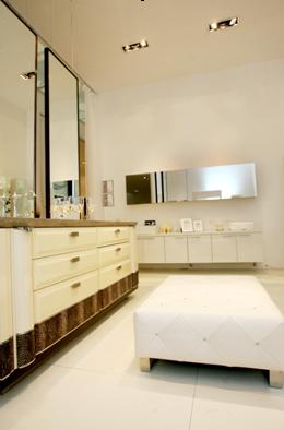在浴室里擺放一件沙發(fā)隨時(shí)享受溫暖和舒適已不再是夢(mèng)想,象牙白混油高光的圖蘭朵浴室柜系列即擁有這一配置:皮質(zhì)扣釘?shù)拈L(zhǎng)條沙發(fā),矮矮地放置在浴室鏡與浴缸之間,可于浴后小坐品一杯紅酒、也可于優(yōu)雅轉(zhuǎn)身間稍事休息并放置物品,造型輕巧,可移動(dòng)到任何角落。