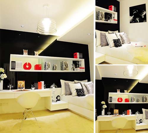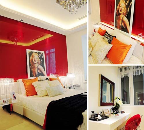 這個(gè)特別私密的空間--MM的臥室,色彩依然是艷麗的紅色,優(yōu)雅的裝飾畫,柔軟的布藝。