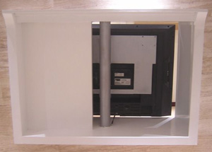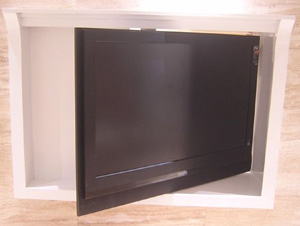 3、墻面開洞,(比實(shí)際電視機(jī)要大出些,尤其是上下間距)為固定旋轉(zhuǎn)架做好準(zhǔn)備