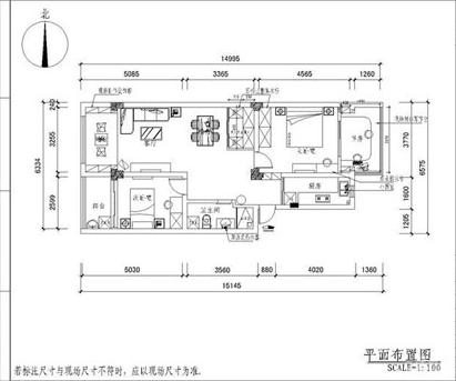 這是裝修之前設計師針對該套房畫的房型裝修設計平面布置圖。