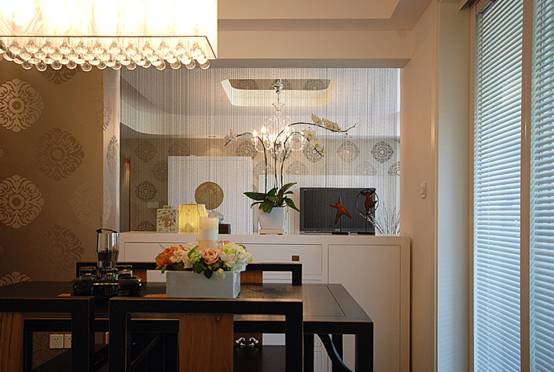 如果把廚房做成局部開放,只有一個(gè)窗臺(tái)大小的位置和餐廳相通的話,這樣防油煙的效果會(huì)比較好,炒菜時(shí)可以用玻璃、簾子或者其他東西遮擋一下,等做飯完畢油煙排干凈再把擋板拿開,也是一種方法。