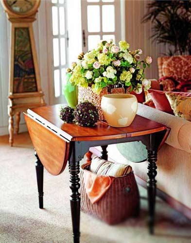 款式簡單大方的沙發(fā)邊桌上細(xì)瓷的大肚陶土器皿,團(tuán)成球狀的綠植,隨手插在草編筐里的不知名野花都散發(fā)出將至的春意,也可將一整束花草以粗草繩捆束,在沙發(fā)深處散發(fā)出淡淡的清香。