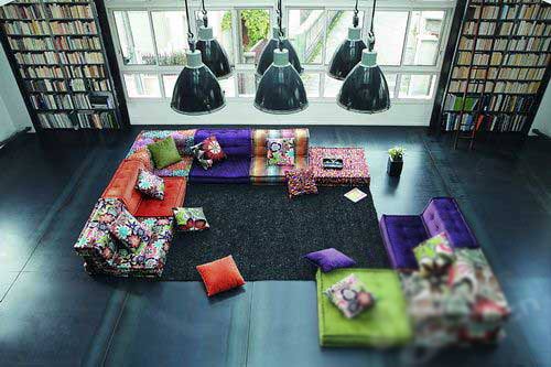 寒冷的空氣總會令人生出懶惰的情緒,重心降低的低姿家具滿足了這種心理需求。色彩斑斕的布藝沙發(fā)構(gòu)成的柔軟組合,強(qiáng)調(diào)了橙、綠、紫這些飽和色的熱力搭配,即使是較寬敞的客廳空間也能布置得暖意融融。交錯碼放的鮮艷靠墊PART5角落風(fēng)景要想增加冬季客廳的暖意,不要光布置顯眼的沙發(fā)、電視柜位置,茶幾、邊幾等通過巧手換裝也可以顯得異?;顫?,會讓居室溫暖生動起來。