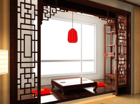 茶式風(fēng)格的陽臺(tái)設(shè)計(jì)是輕裝修、重裝飾的典范。古典的紅木雕花榻配以精致的小木桌;紅木雕花的燈籠下,擺放著全套的功夫茶茶具;傳統(tǒng)的吉祥圖案,在落地窗簾與真絲座墊上跳動(dòng);純毛地毯的色調(diào)又與桌上的瓷器相互唱和;飄逸的落地紗簾遮掩著現(xiàn)代的塑鋼窗。邀一摯友,盤坐于榻上,在明媚的陽光中,或在宮燈的光暈下,細(xì)細(xì)品茗,幽幽的茶香飄散,自然神清氣爽。