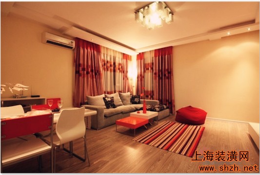 2、紅黃相搭,制造絢爛光線,燈光的照射將看不見的空氣也染成了可愛的橙色。暖暖的橙色,陽光照射進來,更是溫暖。寬敞的客廳,適當(dāng)?shù)臄[設(shè)恰到好處起到調(diào)節(jié)溫暖視線的效果。