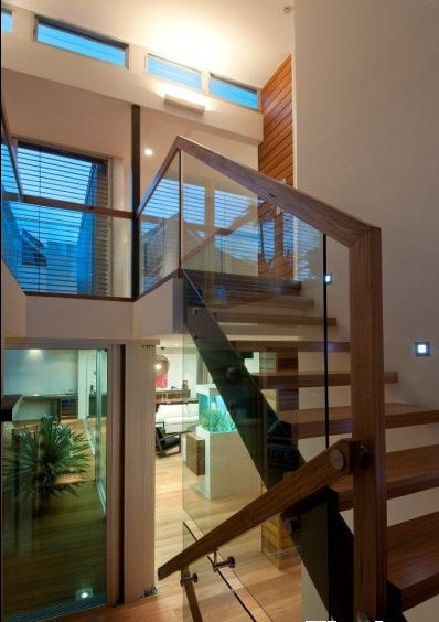 玻璃的元素在這幢別墅里得到了很充分的應(yīng)用,它不僅是在建筑外側(cè),而且貫穿于室內(nèi)。