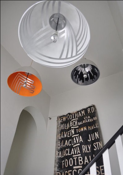 復(fù)式樓,樓梯的燈具往往都是一道獨(dú)特的風(fēng)景。這個旋轉(zhuǎn)樓梯的地方用懷舊風(fēng)的英文字母窗簾布裝飾,隔開大塊的白**塊。而頂上的組合燈具,仔細(xì)看看組合吊燈燈罩內(nèi)的銀色線條,曲折搭配恰到好處,為空間的線條設(shè)計增加流動的設(shè)計感。