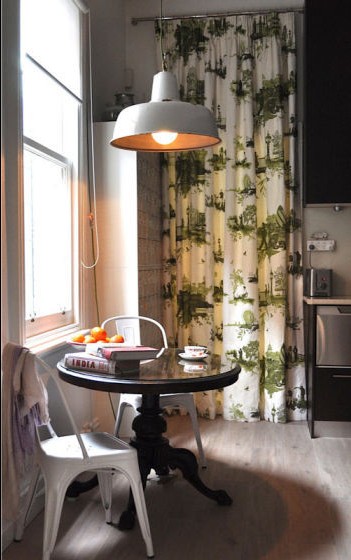 這個小茶座充滿英式風(fēng)情,陽光正好的窗戶旁邊,放一張英國鄉(xiāng)村風(fēng)的圓木桌,一邊享受下午茶,一邊享受閱讀的愉悅,生活輕松寫意。而另一面窗戶用草綠色花紋點(diǎn)綴的米色窗簾布,增添室內(nèi)春天元素的同時,和客廳的綠色裝飾起到相互呼應(yīng)的作用。