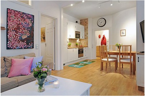 客廳色彩艷麗,家具線條流暢,很簡(jiǎn)潔的北歐風(fēng)格的調(diào)調(diào),干凈而又純凈。裝飾畫(huà)的點(diǎn)綴猶如另一種夢(mèng)境,與潔白的空間映襯著,和諧而生動(dòng),別具匠心。