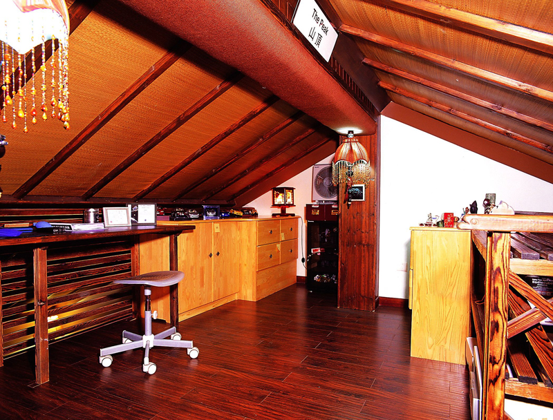 閣樓里的書房,安靜實用。東南亞風格里最不少的就是原木材質(zhì)的家具,它原始風情亦是如此。
