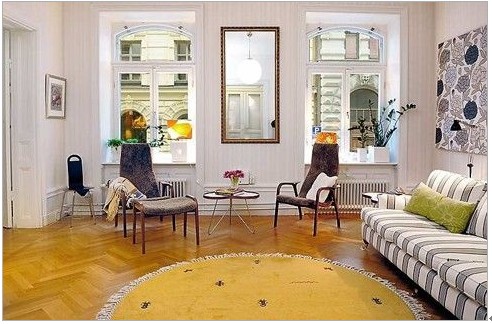 概要: 簡潔的裝修使得空間處理顯得干脆利落,空間裝飾物能夠彌補空間結(jié)構(gòu)上的單調(diào),彰顯屋主的審美情趣。白色是最具有擴張感的色調(diào),它能夠讓不大的客廳顯得明亮而寬敞,而點睛的黃色不僅能打破單一用色可能帶來的視覺乏味,而且還能很好地塑造空間的個性?!】蛷d,灰白相間的條紋沙發(fā)搭配黃色的地板和圓形地毯,冬季溫暖,夏季清涼,清新自然溫暖舒適廚房的設(shè)計與客廳相得益彰。