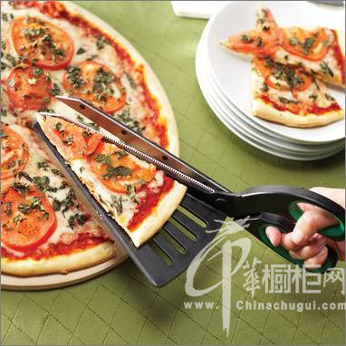 它的切割部分與普通的剪刀類似,可以輕而易舉地將批薩切開。但是這款產(chǎn)品在“剪刀”旁邊還專門配有一把小“鏟子”,因此當你剪下比薩的同時還可以順便用這個小鏟子將剪掉的比薩取出來。