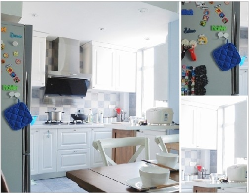 餐廳里兩種色調的餐桌椅,田園風中略帶現(xiàn)代感。桌面上清新動人的半透明海白色玻璃餐具,是整個空間不可缺少的裝飾亮點,用它們來承載關于地中海的浪漫情懷。