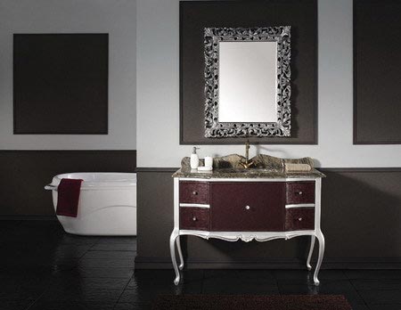 由于色調(diào)比較暗,這間浴室適合光線充足的房間。收納物品時應(yīng)選擇與之同色調(diào)或跳眼的紅色。