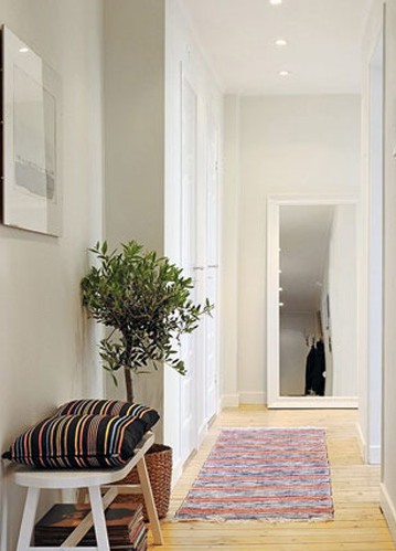 進(jìn)入眼簾的是玄關(guān)過(guò)道處,滿目的白色。白色的墻面提亮了走道的光感,而原木色的地板則又加入自然純樸的感覺(jué)。這樣的空間不會(huì)讓人覺(jué)得太冷,搭配起來(lái)更有現(xiàn)代感。白色的墻面、白色的吊頂讓空間提以拉升,它的光感已經(jīng)解決了空間高度問(wèn)題。