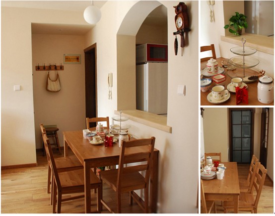 玄關(guān)處設(shè)計(jì)實(shí)用美觀,進(jìn)門便可將餐廳盡收眼底,設(shè)計(jì)小巧且居實(shí)用性,一側(cè)實(shí)木小吧臺(tái)的加入給這個(gè)小戶型帶來一絲特別。餐廳家具的選擇多半選用了原木材料,打造出一個(gè)環(huán)保自己的風(fēng)格路線。