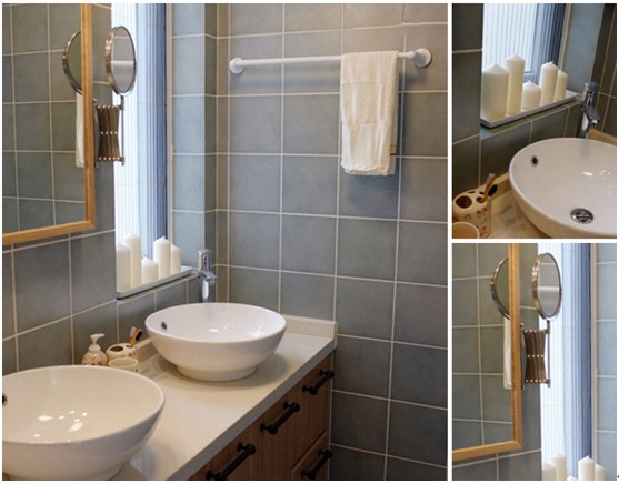 日式風(fēng)格特別能與大自然融為一體,借用外在自然景色,為室內(nèi)帶來無限生機(jī),衛(wèi)浴間臺(tái)盆線條圓潤富有質(zhì)感。外加浪漫的燭臺(tái),夜晚來臨讓它來作為主要光源,浪漫而溫馨。