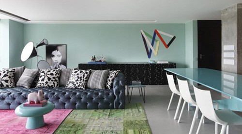 概要: 此套公寓案例體現(xiàn)了現(xiàn)代混搭主義,湖藍和綠色的搭配運用給人眼前一亮的感覺,清新自然,綠色又給人帶來大自然環(huán)保的感覺。