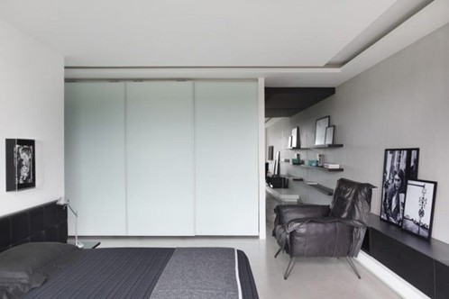 又見白與藍的搭配,緩和素雅的空間設(shè)計,一抹亮色帶來不一樣的居室效果。嵌入式的冰箱也為室內(nèi)節(jié)省了不少的空間。