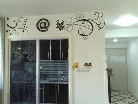 小小的純白空間里還有墻繪藝術(shù)呢,黑色的墻繪使得白色的墻壁不那么單調(diào),有個(gè)性。