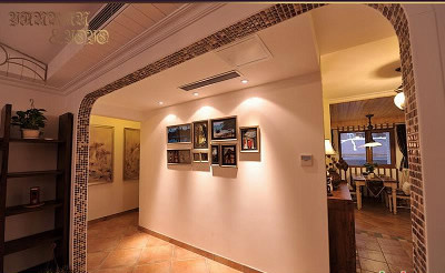 從拱形馬賽克裝飾啞口 看照片墻照片是按照設(shè)計師給的尺寸洗出來 她陪我選好相框以后我和老公自己安裝的 為了讓照片的位置正確 我們費了很大的力氣,最后效果很滿意 超有成就感。