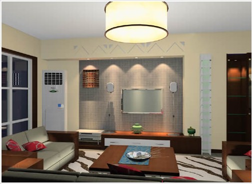 電視造型墻面,設(shè)計師很好的利用了原來的過梁,加以簡單造型,配上淺灰的壁紙,豹紋地毯的顏色與木質(zhì)的家具相匹配,讓空間更加豐富!