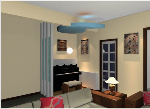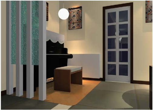 客廳的一角,設(shè)計師巧妙地改造成了鋼琴區(qū),梁上一格逗號特別的造型,呵呵 還挺有藝術(shù)感!