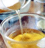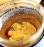 第二步:將蜂蠟假如碗內(nèi)的松脂中。把深平底鍋放在小火上,讓水慢慢熱起來(lái),直到蜂蠟熔化為止,不要讓水沸騰,之后將鍋放在旁邊冷卻。