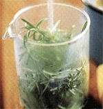 第三步:為了泡制迷迭香,先將其放入罐內(nèi),再將煮開的250毫升的水倒在罐內(nèi),浸泡10至15分鐘,如有必要,將迷迭香壓到水下。