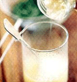第四步:將篩子放在碗上,把泡制的迷迭香放入碗內(nèi),用金屬勺子擠壓迷迭香,擠出全部液體,在罐內(nèi)量一量,約200毫升即可,再把液體倒入隔熱罐內(nèi),加上皂片,直至煮化,再冷卻。