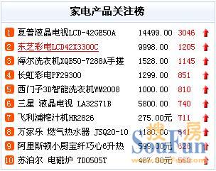 從本周的家電產(chǎn)品關(guān)注排行榜上可以看到,共有4款電視產(chǎn)品上榜,平板電視在奧-運(yùn)后的原材料跌價(jià)風(fēng)波中進(jìn)入低谷,經(jīng)過(guò)國(guó)產(chǎn)與外資的曠日持久的促銷(xiāo)降價(jià)大戰(zhàn),終于再度贏得消費(fèi)者的關(guān)注,在春節(jié)期間,家電銷(xiāo)售業(yè)績(jī)不錯(cuò),而其中最受關(guān)注的無(wú)疑就是平板電視。【相關(guān)新聞:春節(jié)家電賣(mài)場(chǎng)銷(xiāo)售火爆 一半銷(xiāo)售額來(lái)自平板電視】