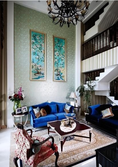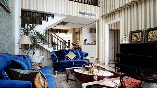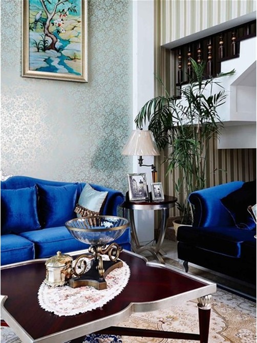 概要: 此套方案坐落于市郊別墅區(qū),山水相連,風景很是美觀。設計師還原生活的本態(tài),對空間語言的精準把握,展現(xiàn)在我們面前的是以列精雕細琢、風格優(yōu)雅的藝術品。 推門而入時,那一股貴族藍的氣息就向你迎面襲來,色彩豐富的抱枕裝飾則巧妙地過渡了空間的色澤順序。各式精美的工藝品令人耳目一新,美式古典造型的家具陳列,在提供業(yè)主功能便利性的同時,也賦予空間一種別致的美感。
