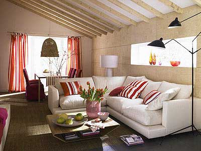 利用裝修手法區(qū)分:各個(gè)功能性分區(qū)都有它的主要功能,您可以利用獨(dú)特的裝修手法來(lái)區(qū)分它們。這種區(qū)分主要在吊頂上,如在整個(gè)大廳中可以做兩個(gè)局部的吊頂,在會(huì)客區(qū)上方安置一個(gè)吊頂,在餐廳上方再安排一個(gè)吊頂,這樣就自然形成了兩個(gè)區(qū)域。另外,還可以利用墻壁裝飾來(lái)區(qū)分空間。如在會(huì)客區(qū)中,視聽(tīng)設(shè)備后的“文化石背景墻”就與餐廳的“固定式餐具柜”形成鮮明對(duì)比。