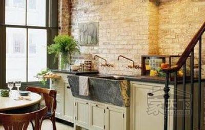 地材與墻材突出原始:鄉(xiāng)村風格還有它獨特的標志,如暴露在外的房梁、松木嵌板以及裸露的磚塊,都是鄉(xiāng)村風格的金字招牌。如果你想打造一個純粹的鄉(xiāng)村廚房,那就接受這樣一個挑戰(zhàn):直接使用磚石鋪地、用原木而不是木板做墻面或吊頂(難度在于材料很難找到),只要決心已定,力氣足夠大,就能建造一個十分美麗的廚房。
